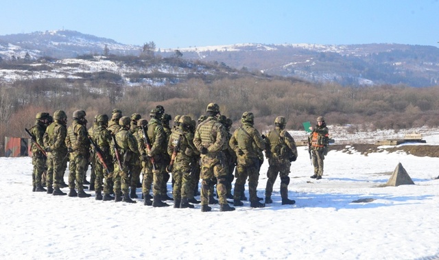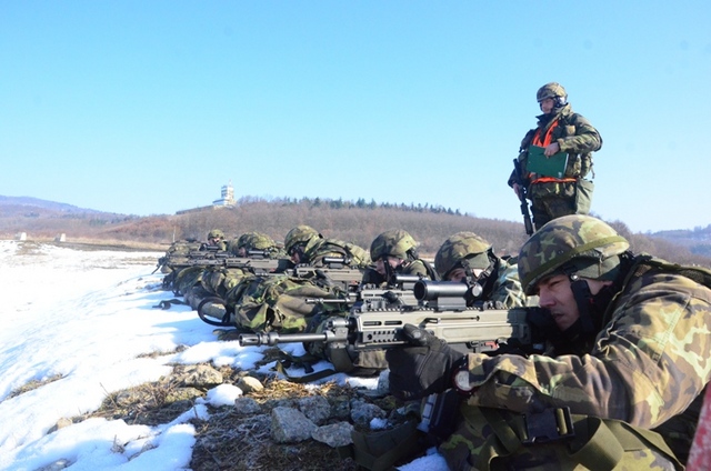 Vedoucí praporčík nadrotmistr Michal Klíma při přezkoušení z bezpečnostních opatření při střelbách 1. roty