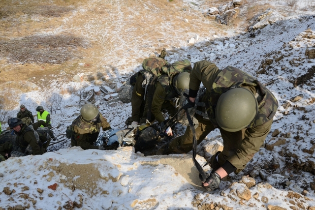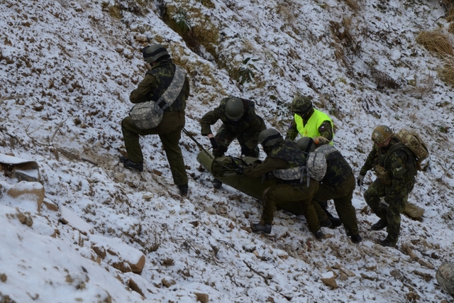 Fyzickou náročnost výcviku umocňovaly terénní nerovnosti, které studenti překonávali.