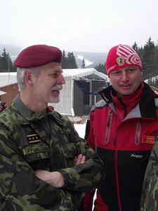Po jednání generál Petr Pavel společně se svým zástupcem generálem Františkem Malenínským a náčelníkem HS z Beskyd Radimem Pavlicou sledují zápolení členů horských služeb z celé ČR, Slovenska, Polska, Německa a Slovinska v rámci mezinárodních závodů HS, které se uskutečnily ve dnech 3. a 6. dubna ve Špindlerově Mlýně