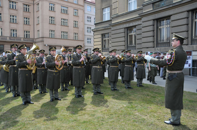Před zahájením slavnostní vernisáže výstavy před Generálním štábem AČR v Praze Dejvicích koncertovala dvě hudební tělesa - Ústřední hudbu AČR řídil major Pavel Spinek