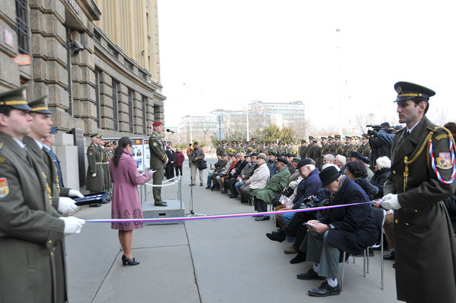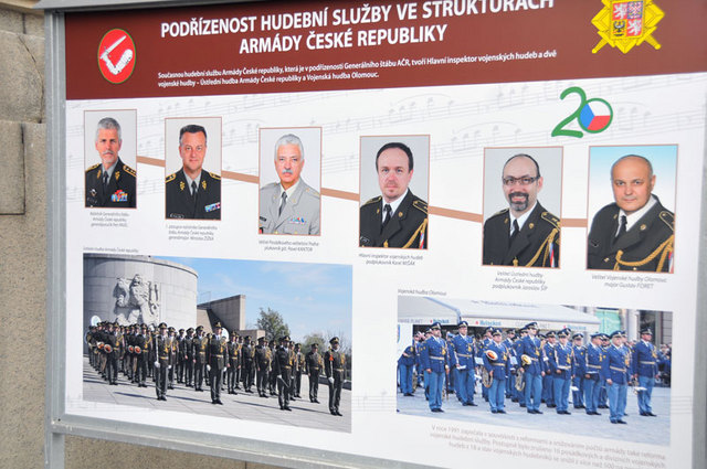Před zahájením vernisáže výstavy před Generálním štábem AČR v Praze Dejvicích koncertovala dvě hudební tělesa - druhé Vojenskou hudbu Olomouc střídavě dirigovali major Kamil Mezihorák a kapitán Josef Kučera