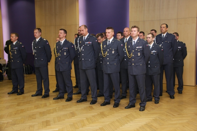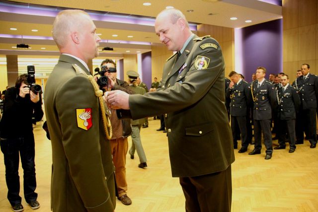 Ředitel Vojenské policie MO SR plk. Jaroslav Hamár uděluje vyznamenání