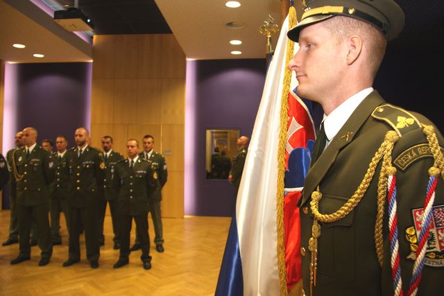 Čestná stráž nastoupila nejen s českým, ale i slovenským praporem