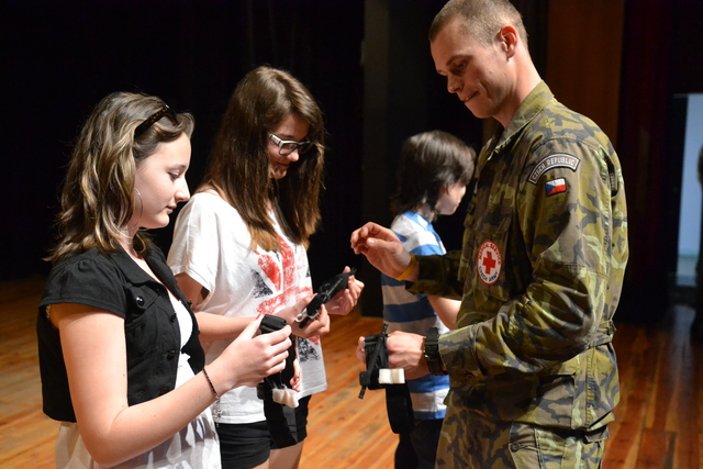 Pod odborným dohledem si děti nacvičily zaškrcení masivního krvácení