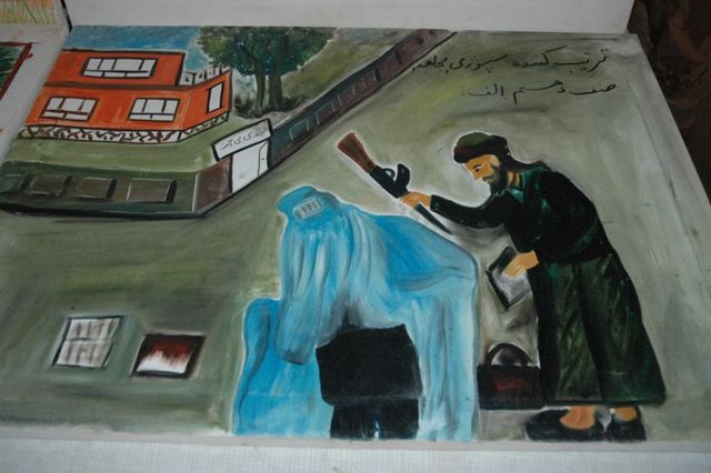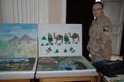 mjr. Jindřich Plescher, člen 10. PRT u výstavy obrázků, které malovaly afghánské děti