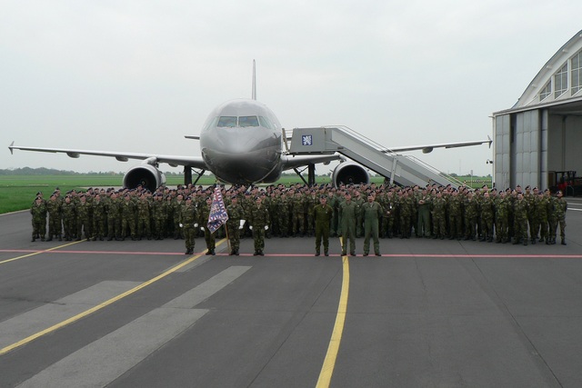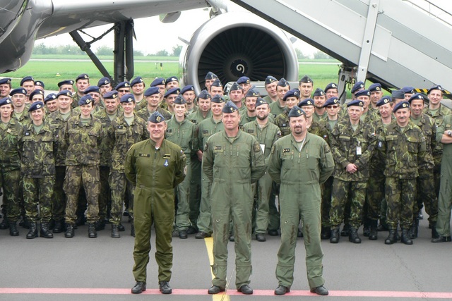 Společná fotografie s příslušníky 24. základny dopravního letectva na letišti v Praze - Kbelích