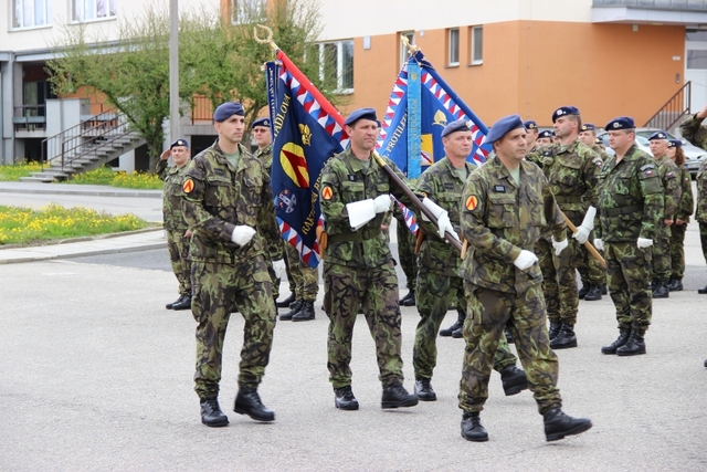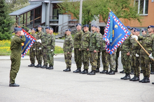 Slavnostní nástup byl zakončen odnesením bojového praporu strakonické brigády