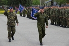 Brig. gen. Jiří Verner před bojovým praporem 251. protiletadlového raketového oddílu
