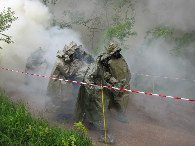 Při překonávání zamořeného terénu přenášeli raněné I.