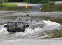 Při výjezdu z vody se velitel vozidla stahuje zpět do bojové pozice (tedy zavírá za sebou poklop) a řidič stahuje vlnolamy