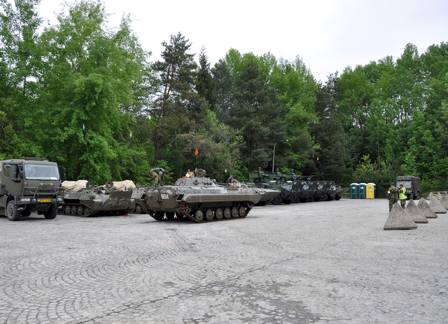 Vozidla BVP technicky připravena na Plavbu, před samotným vjezdem do vody je ještě čeká další kontrolní místo