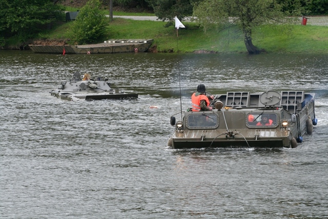 BVP v průběhu plnění úkolu plaveb. Vzhledem k tomu, že se cvičení plaveb provádí bez osádky roje a ve vozidle je pouze velitel vozidla a řidič, je nutné, aby byl prostor roje zatížen uměle a tím se zabezpečily optimální plovací vlastnosti BVP. Tuto přípravu vozidel zabezpečuje pro všechny útvary, které se plaveb 2013 účastní, prapor zabezpečení Vyškov.