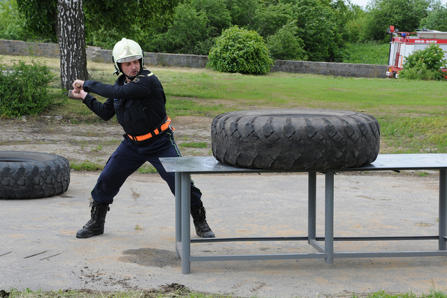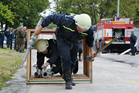 A toto je další z disciplín - pneumatika simulující vyproštění raněných z ohroženého prostoru