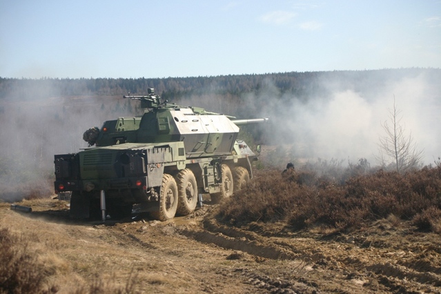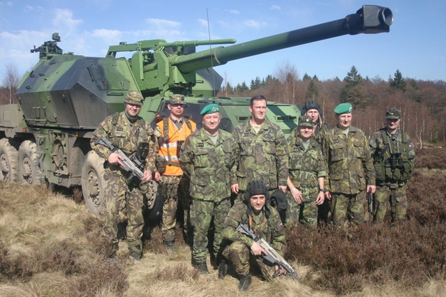 Společná fotografie plk. Libora Pokorného s náčelníkem dělostřelectva AČR plk. Ivanem Mrázem, náčelníkem štábu 13. db plk. Štefanem Roškem a dalšími dělostřelci před houfnicí Dana