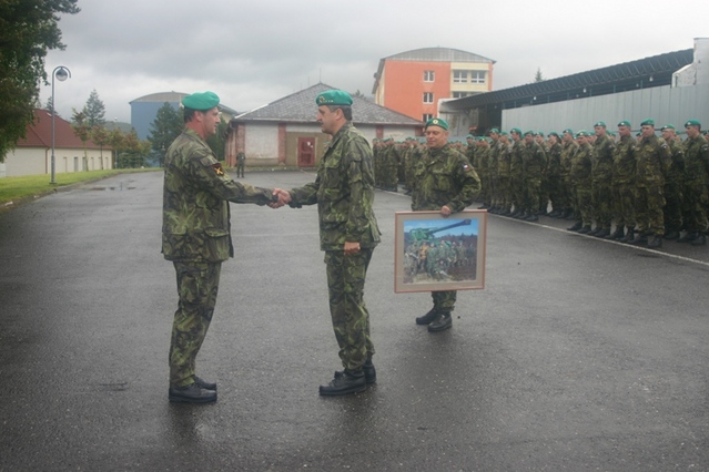 Velitel 13. db plk. Jan Třináctý poděkoval plk. Pokornému za odvedenou práci a předal mu dárek od zaměstnanců útvaru
