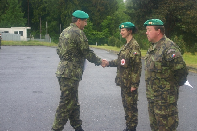 Velitel 13. db plk. Jan Třináctý blahopřeje k povýšení kpt. Petru Koudelkovi