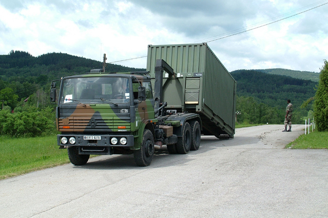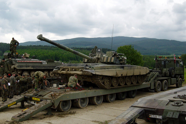 Ověřování kompatibility podvalníků mezi jednotlivými armádami k přepravě různých typů vojenské techniky během cvičení Collective Effort 2004