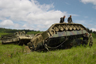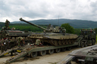 Vojáci stály během cvičení Collective Effort 2004 mimo jiné i před úkolem, jak vrátit tank po simulovaném převrácení zpět na pásy