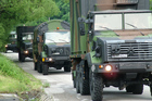 Příjezd francouzského konvoje na cvičení Collective Effort 2004 ve vojenském výcvikovém prostoru Boletice