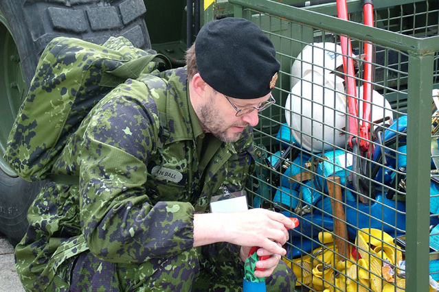 Jeden z účastníků cvičení Collective Effort 2004 při kontrole upevňovacího materiálu
