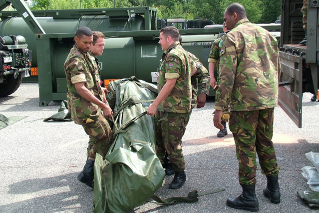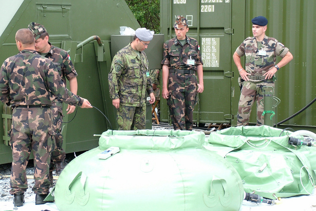 Příprava vaků k polnímu uskladnění paliva na letišti Planá u Českých Budějovic v rámci cvičení Collective Effort 2004
