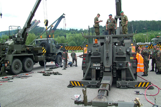 Ukázka těžké kolové vyprošťovací techniky v rámci cvičení Collective Effort 2004