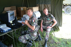Jedno z pracovišť sledujících pohyb materiálu pomocí čárových kódů zásilek během cvičení Collective Effort 2004