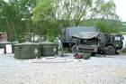 Oprava proražené nádrže na jiném ze stanovišť během cvičení Collective Effort 2004