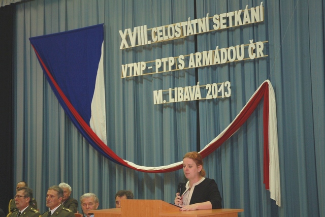 Účastníky slavnostního zasedání pozdravila náměstkyně ministra obrany pro personalistiku Lenka Ptáčková Melicharová