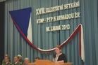 JUDr. Bohumír Dufek, první místopředseda Svazu PTP ČR, promluvil k účastníkům setkání ve Městě Libavá