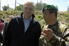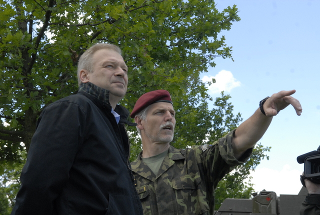 Na Císařský ostrov dorazil ministr obrany Vlastimil Picek. Pplk. Horáček mu podává aktuální informace