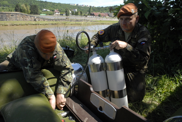 Vojáci 15. ženijní brigády zasahují na Císařském ostrově v Praze