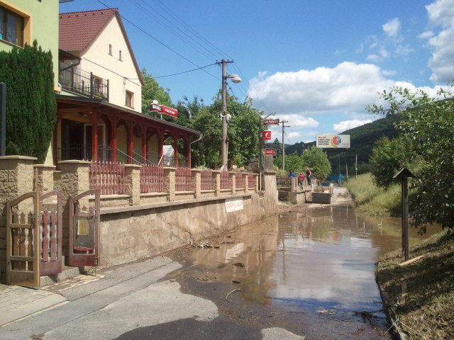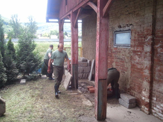 Příslušníci 14. brigády logistické podpory při likvidování zaneseného materiálu v obci Povrly