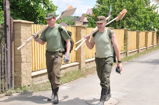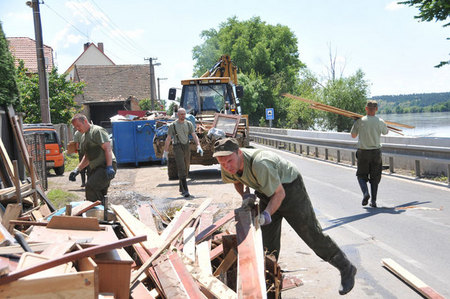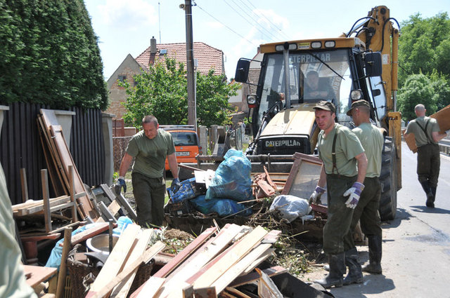 Spolu s dobrovolníky, hasiči a dalšími obětavými lidmi, pomáhají místním s odklízením již nepotřebného materiálu i čeští vojáci