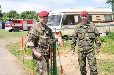 Nejenom s hlídkovou činností pomáhali příslušníkům Policie ČR vojáci 4. brigády rychlého nasazení. Títo dva Žatečáci střežili stanový tábor, který pro místní i dobrovolníky vybudovali olomoučtí vojenští záchranáři na hřišti Sokola Zahořany