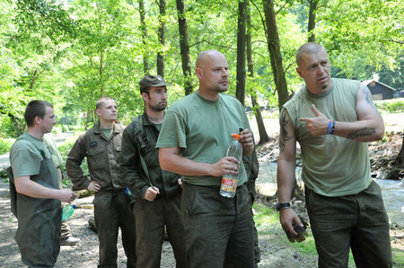 Část vojáků z Rakovníka, kteří přijeli pomoci do Štěchovic - druhý zprava velitel skupiny poručík Václav Melichar