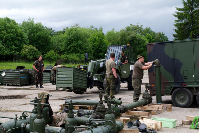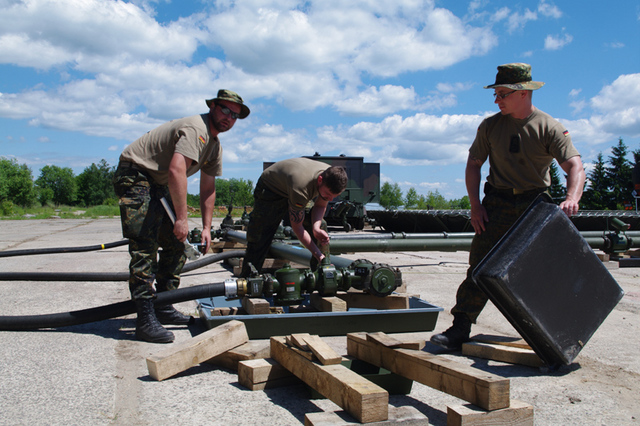 Poslední přípravy v německém polním skladu paliva před zkouškou těsnosti