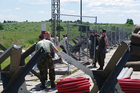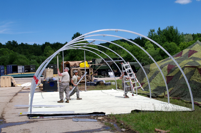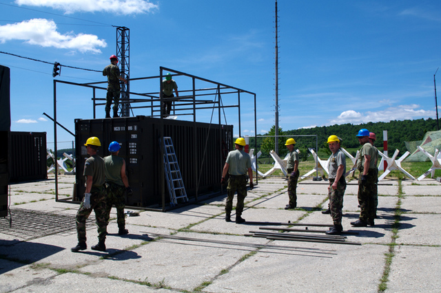 Výstavba kostry ochranné konstrukce kolem muničního kontejneru