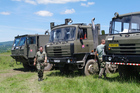 Přepravní vozidla čekají po složení techniky a materiálu v autoparku na další úkoly