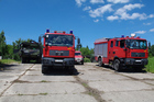 Hasiči jsou v pohotovosti na svém stanovišti mezi polními sklady paliva