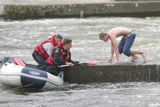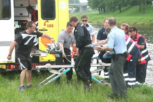 Desátník Josef Jindříšek pomohl s resuscitací tonoucího a byl nápomocen záchranářům (na fotografii zcela vlevo).