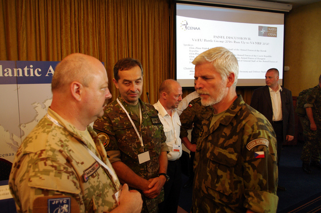 zleva generál Benkő, generál Vojtek, moderátor Mário Nicolini, generál Pavel, viceadmirál Gluszko