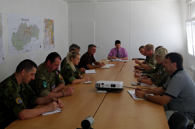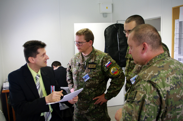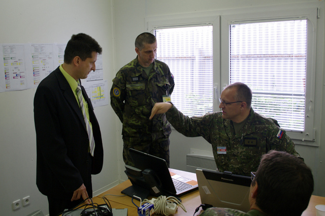 Petr Jedlink (zcela vlevo) při jednání na skupině podpory hostitelkou zemí během cvičení CL13