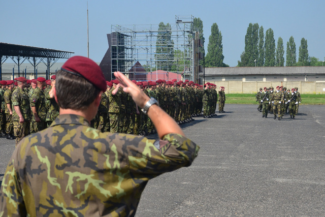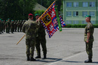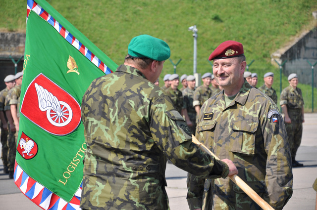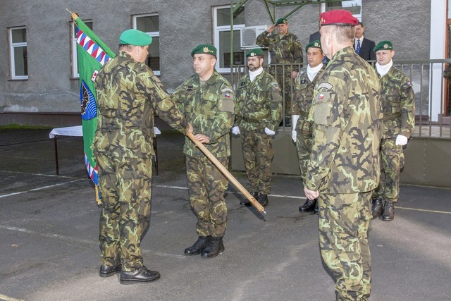 Zástupce velitele 53. brigády průzkumu a elektronického boje plk. Pavel Andráško předal bojový prapor budoucímu veliteli Pozemních sil genmjr. Jánu Gurníkovi