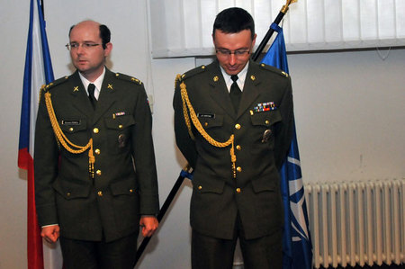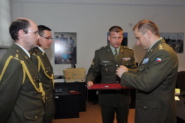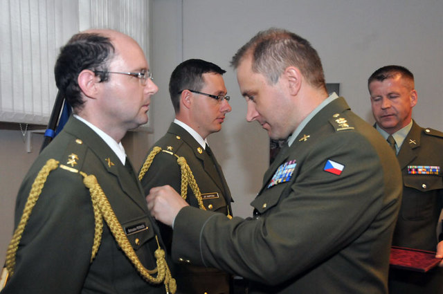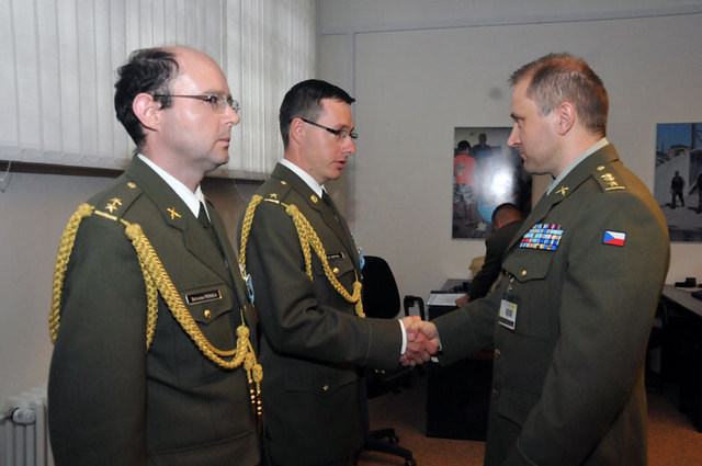 Medaile ministra obrany Za službu v zahraničí - Bosna Hercegovina III. stupně předával plukovník Václav Vlček - zcela vpravo