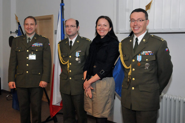 Vyhodnocení účasti v misi a slavnostního předání medailí se zúčastnila také pracovnice odboru bezpečnostní politiky Ministerstva zahraničních věcí ČR Hana Kalašnikovová