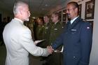 generálporučík Petr Pavel přijímá hlášení na úvod setkání s odcházejícími plukovníky