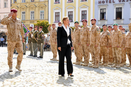 Náměstkyně ministra obrany Lenka Ptáčková Melicharová vykonala v doprovodu velitele 11. jednotky PRT majora Vladimíra Jelínka přehlídku nastoupených celků