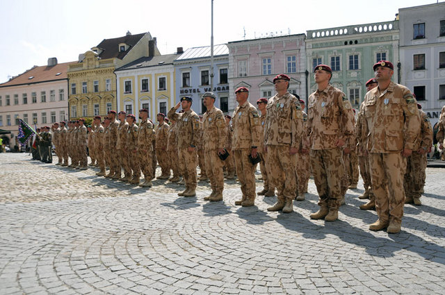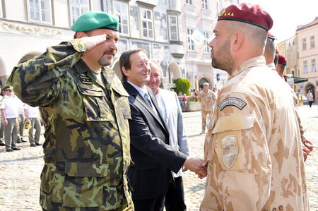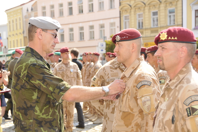 Vojáci 11. jednotky PRT obdrželi na náměstí Míru v Jindřichově Hradci ocenění za vynikající splnění úkolů mise v Afghánistánu