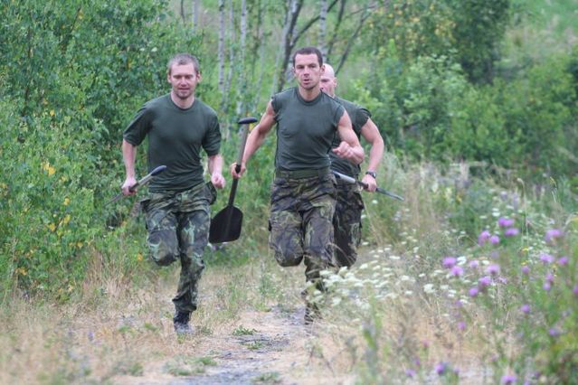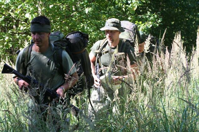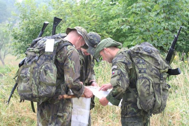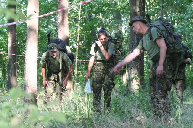 Hlídka při plnění jednoho z odpočinkových úkolů - vyhledávání nástražných výbušných zařízení